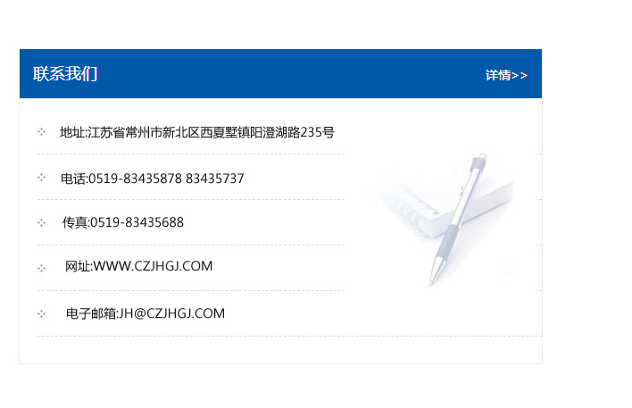 地址:常州市新北區友邦商務大廈1幢16、17層  電話:0519-85101652  傳真:0519-85112595  郵編:213022  網址:www_cz-jiayue_cn.jstzctjx.com  郵箱:xiajifengaa@163.com